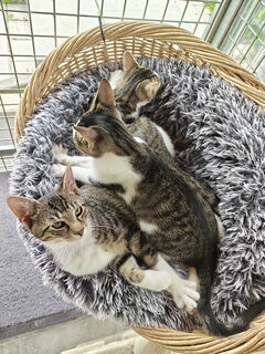 Die Drei sind Mitte Mai 2025 geboren, geimpft, Aria ist bereits kastriert. Es sind total liebe Kätzchen, die es wirklich verdient hätten, ein schönes Zuhause zu bekommen.