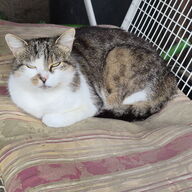 Sie wurde als sehr scheue Katze zusammen mit ihren 4 Babies eingefangen. Inzwischen hat sie sich zu einer super lieben Schmusekatze entwickelt, die sich sehr über ihre Streicheleinheiten freut.
