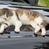 Er ist ursprünglich vor über einem Jahr als scheuer , unkastrierter Kater bei einer Tierfreundin zugelaufen. Er wurde dann von uns eingefangen und kastriert. Nachdem er immer zutraulicher wurde und immer nehr ins Haus drängte, was dort nicht möglich war, wurden wir gebeten ihn aufzunehmen.