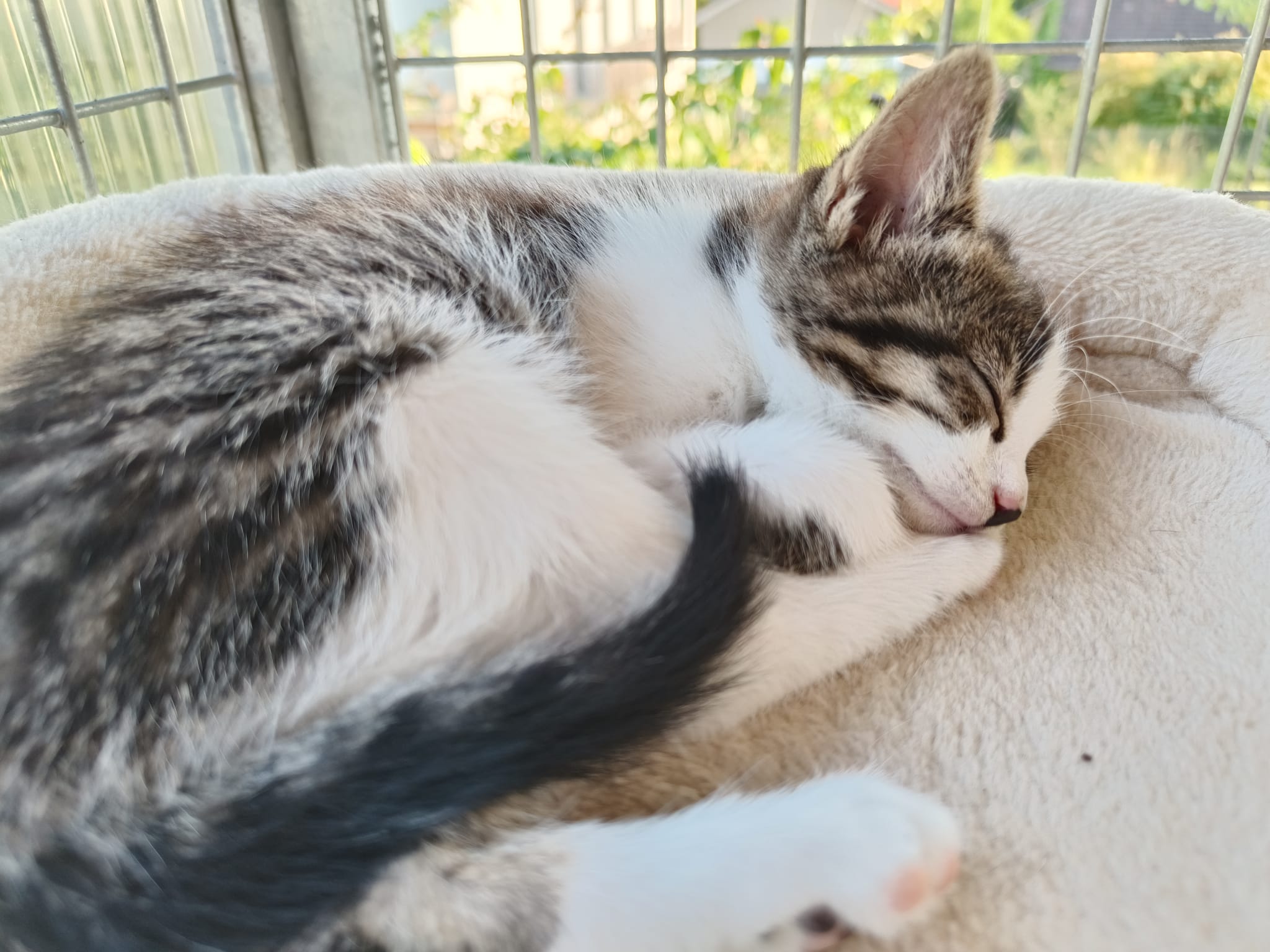 Peppa ist letztes Jahr als zunächst scheue Katze bei tierlieben Leuten zugelaufen, wo sie aber nicht bleiben konnte und wurde dann über uns kastriert. Sie wurde immer zutraulicher und hat inzwischen eine Pflegestelle gefunden, auf der sie sich sehr wohl fühlt und von der aus sie nun ihr eigenes Zuhause sucht.