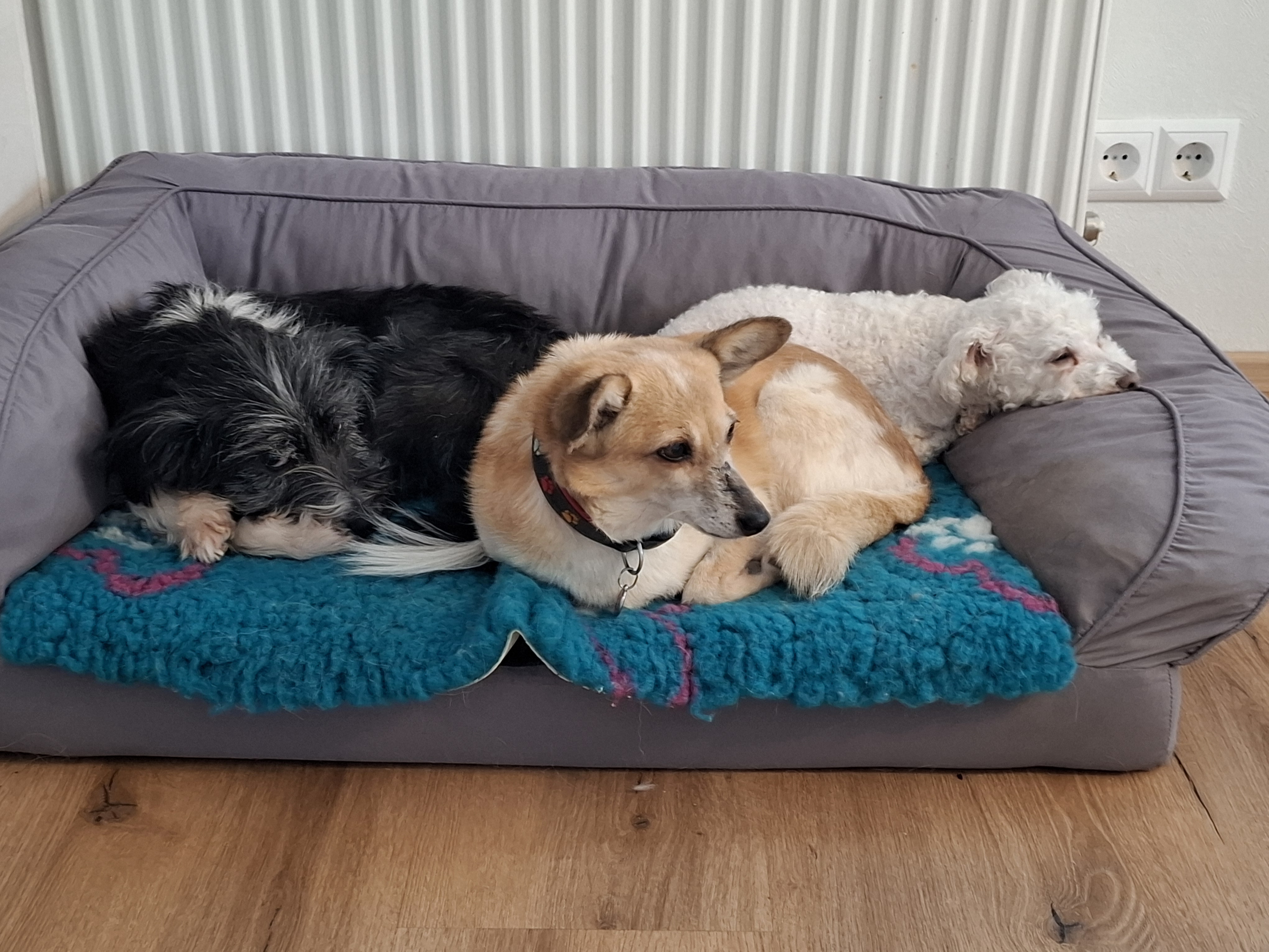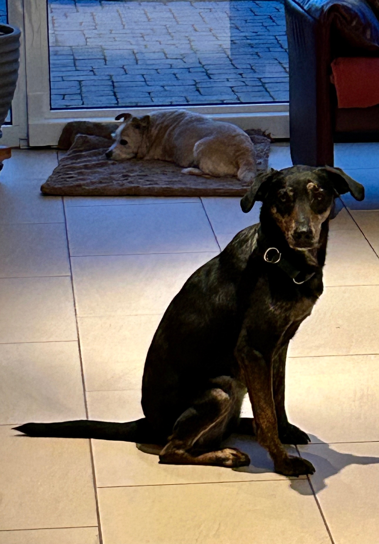 Inola kam am 21.02. bei ihrer Pflegefamilie am Bodensee an und war gleich sehr den Menschen gegenüber offen und auch an der Hündin der Pflegestelle neugierig interessiert.
